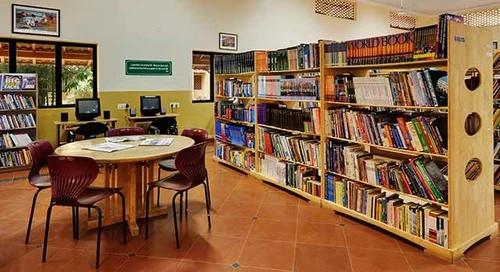 A modern library space with comfortable seating, Wi-Fi, and peaceful study environment.